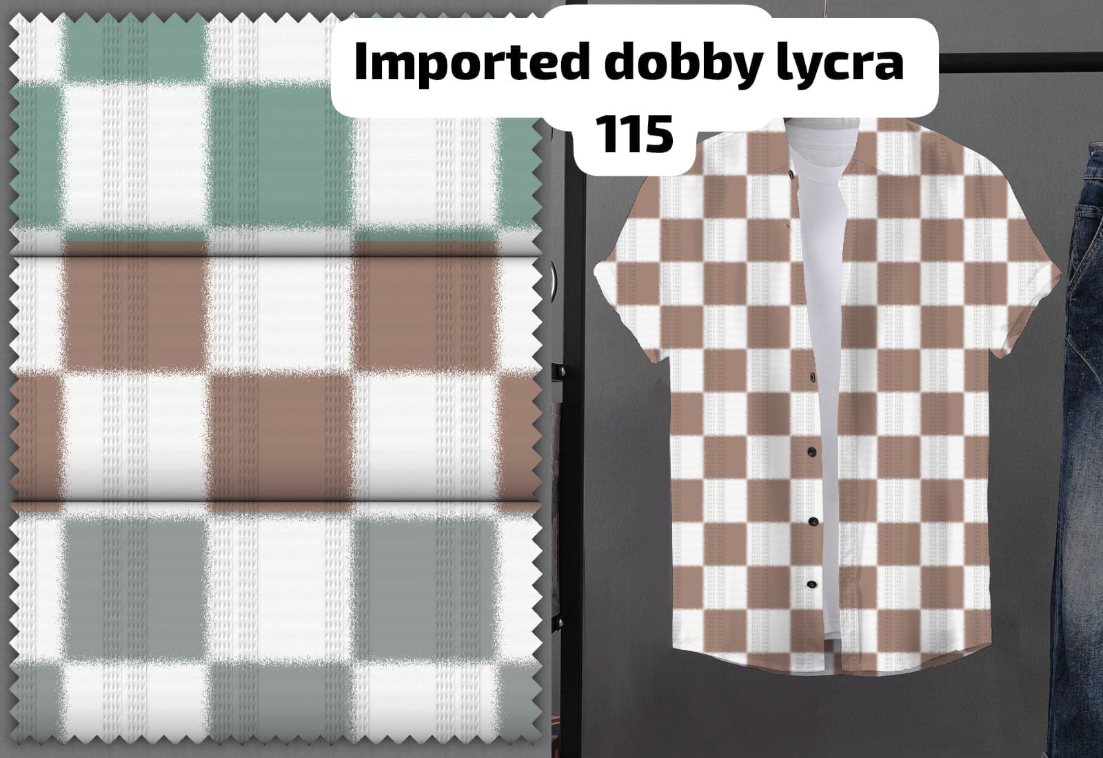 Dobby Lycra shirting fabrics are premium woven textiles that combine the dobby weave technique with stretch comfort from Lycra (spandex/elastane). When imported, these fabrics are typically sourced from high-quality weaving mills abroad, ensuring fine finishing, rich textures, and durability.